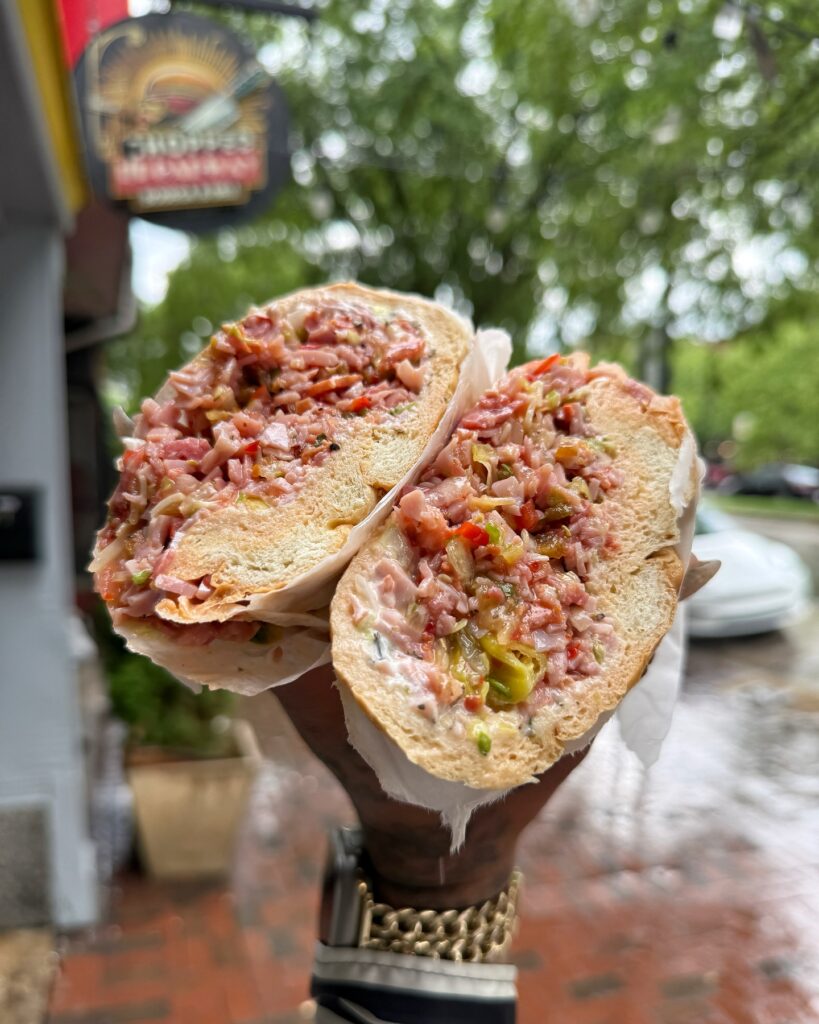 Chopped is a NY style bodega located in the Fells Point area of Baltimore. They have drinks, chips and some home needs, but the star of the show are their overstuffed chopped sandwiches. Each of these options is super stuffed and makes two meals for most people. This place is a great place to grab something to take home after a workout or a run as a filling treat.