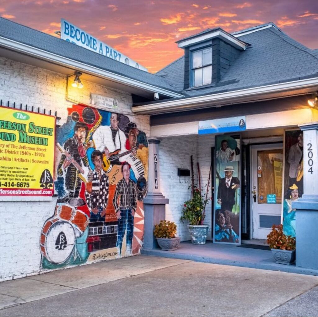 Jefferson Street Sound is a non-profit organization established to preserve the music and entertainment history of Jefferson Street. The facility includes the museum as well as a rehearsal hall and production studio. Their programming is building a bridge to that legacy with education and through the exhibits featured using the unique position of Jefferson Street as a stop on the “Chitlin’ Circuit”.